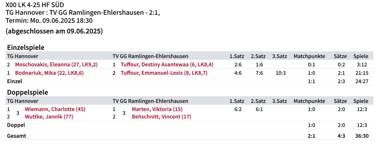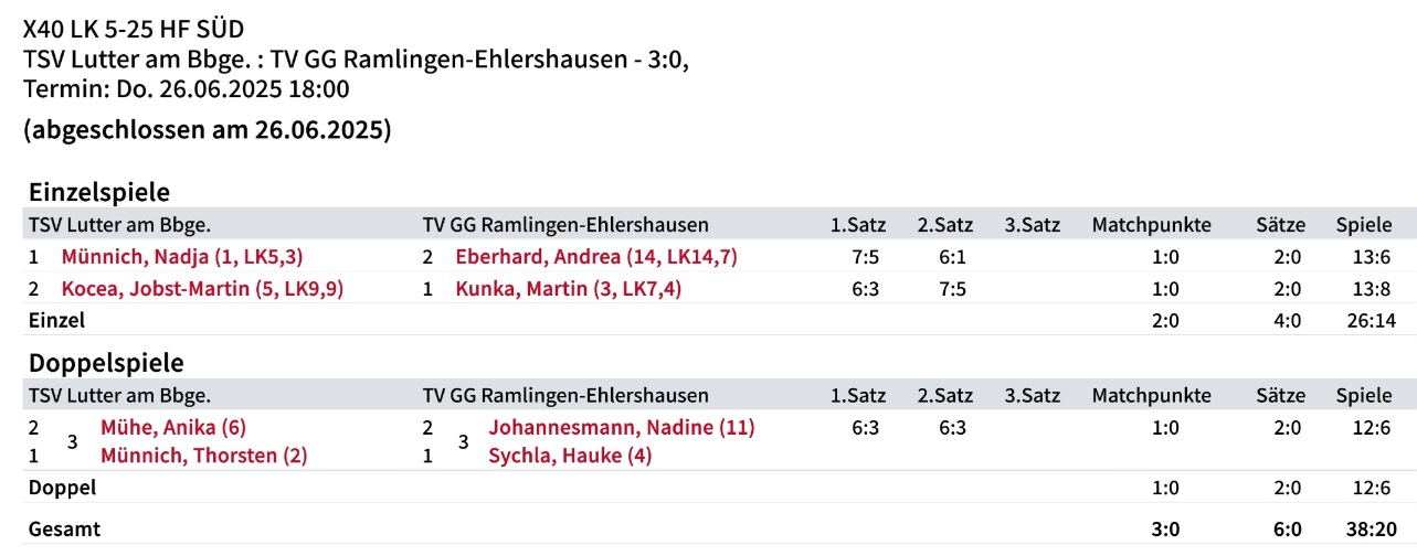 LK-Tuniere im TVGG - Stand 26.04.2025:
