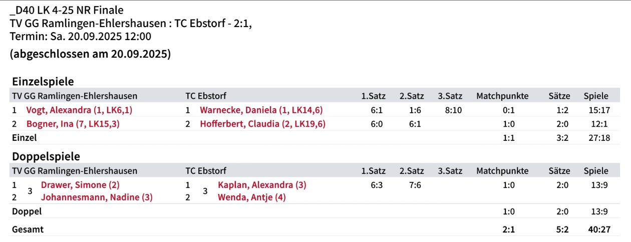 Für die namentliche Mannschaftsmeldung der Damen und Herren gilt die Deutsche Rangliste vom 31.12.2024,