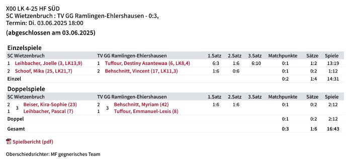 19.04.2025 der offizielle Spieltermin, Sonntag um 09:00 Uhr in „nuLiga“ automatisch
