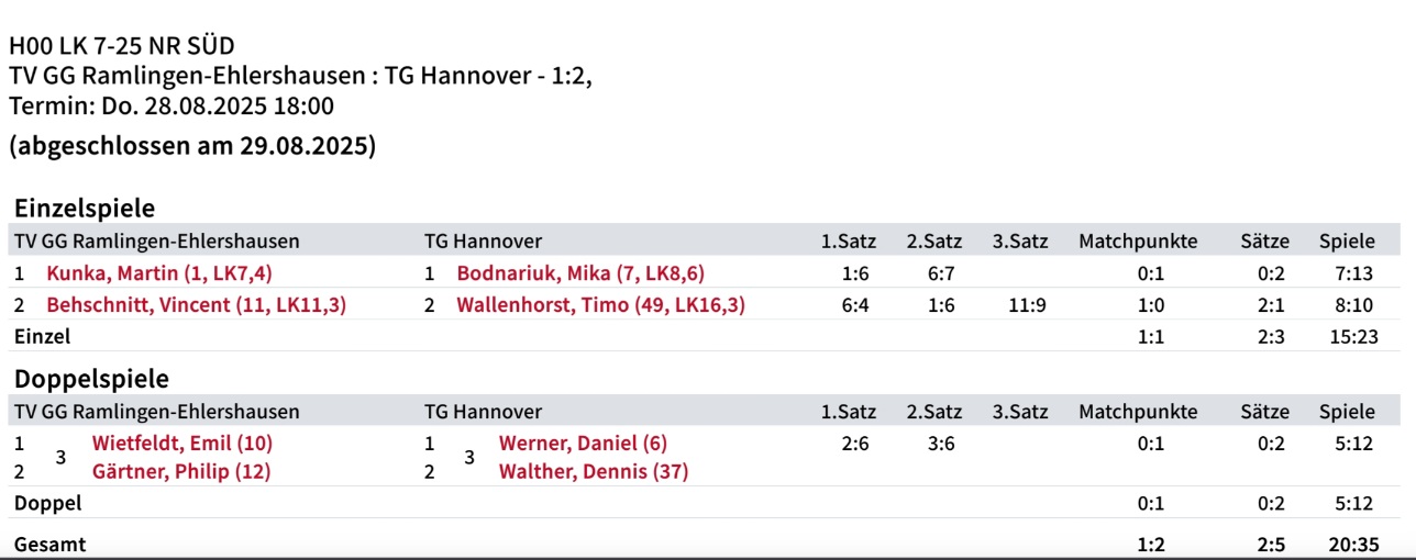 LK-Tuniere im TVGG - Stand 26.04.2025: